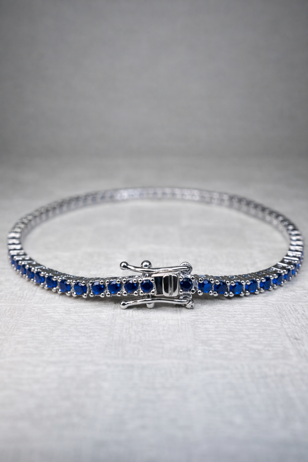 Sofisticato e intramontabile, Tennis Deep Blue in argento 925 è caratterizzato da una fila continua di zirconi blu dal colore intenso, ispirato alla profondità dei veri zaffiri. La linea sottile e il design classico rendono questo bracciale un accessorio elegante e versatile, perfetto per aggiungere un tocco di luminosità e raffinatezza a qualsiasi outfit. Un gioiello ideale per chi ama la semplicità preziosa e i dettagli che fanno la differenza.