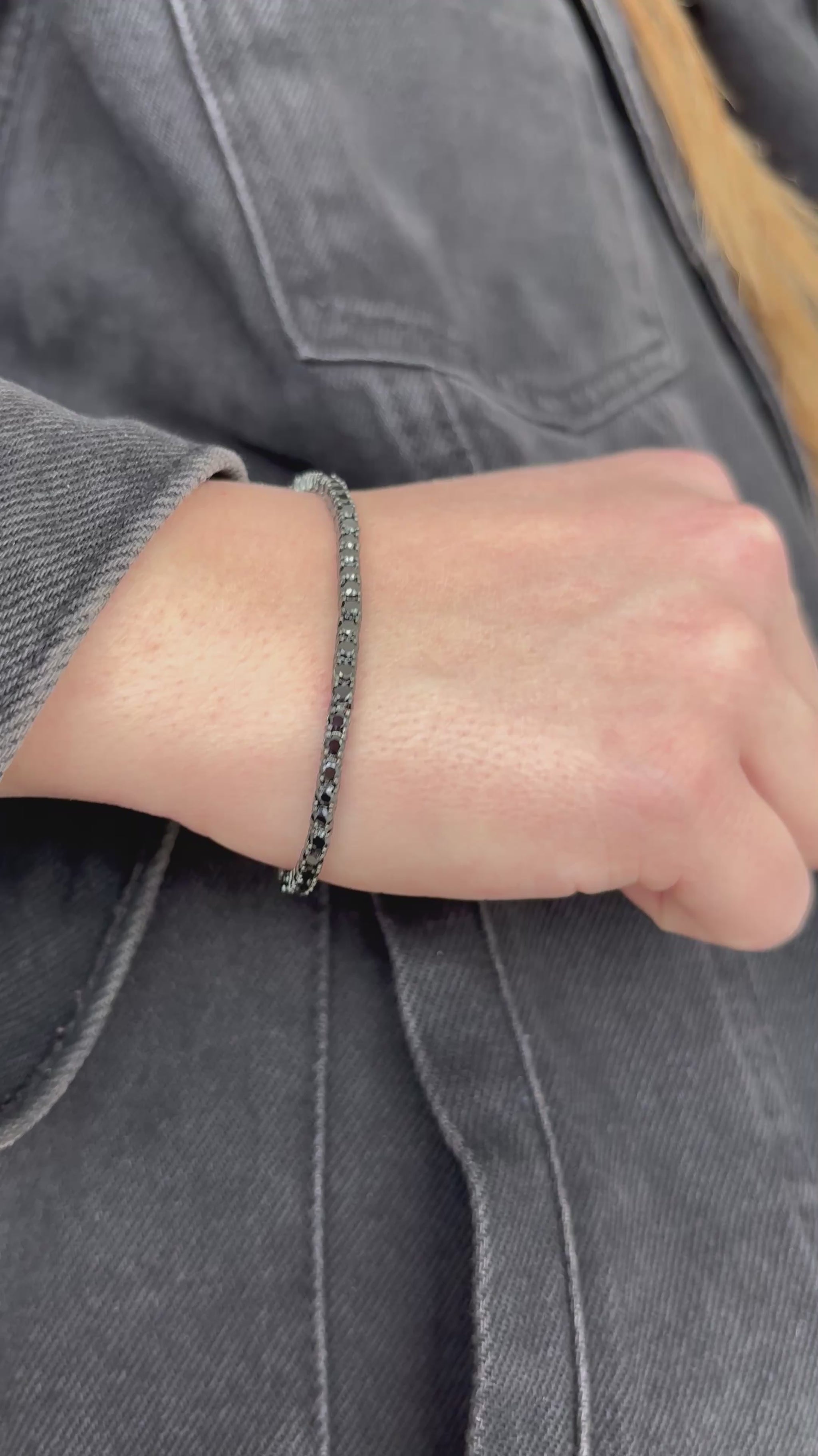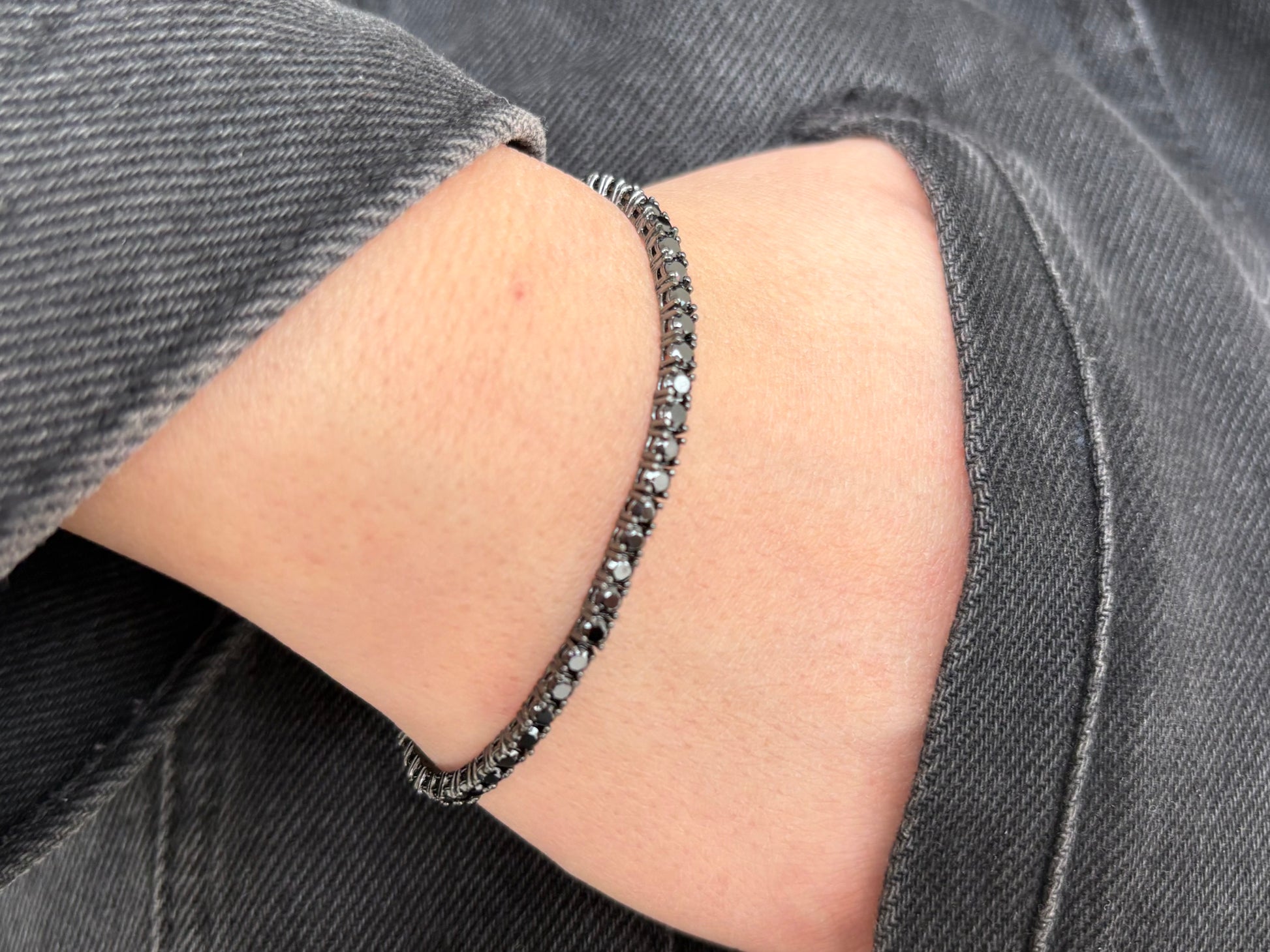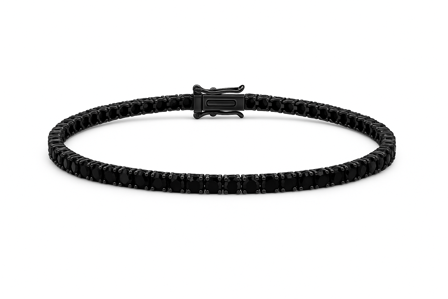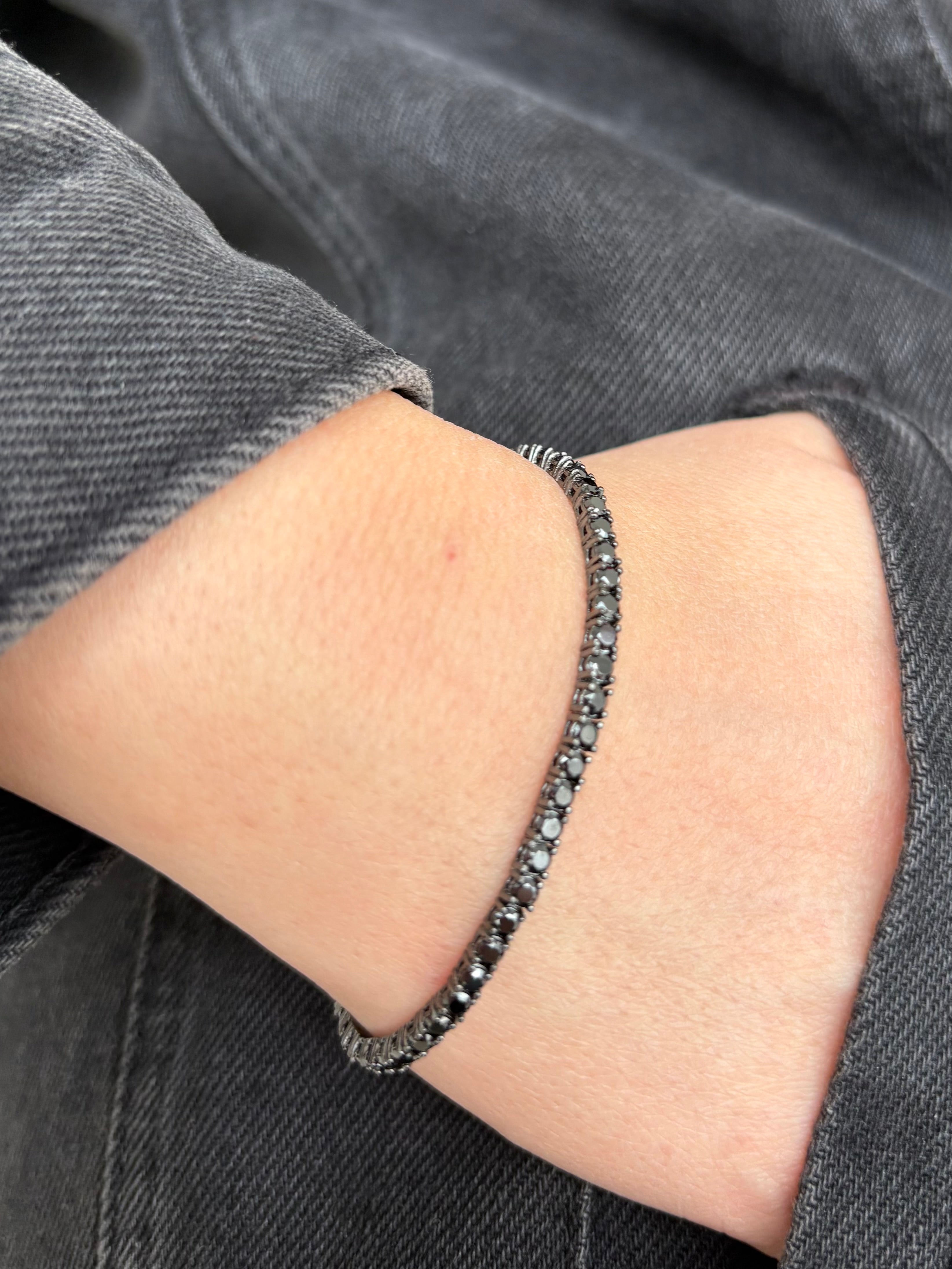 Il bracciale Tennis Black Eclipse è realizzato in argento 925 con placcatura nera e tempestato da zirconi neri dal taglio brillante. L’effetto total black dona al gioiello un carattere moderno, minimal e allo stesso tempo estremamente elegante.