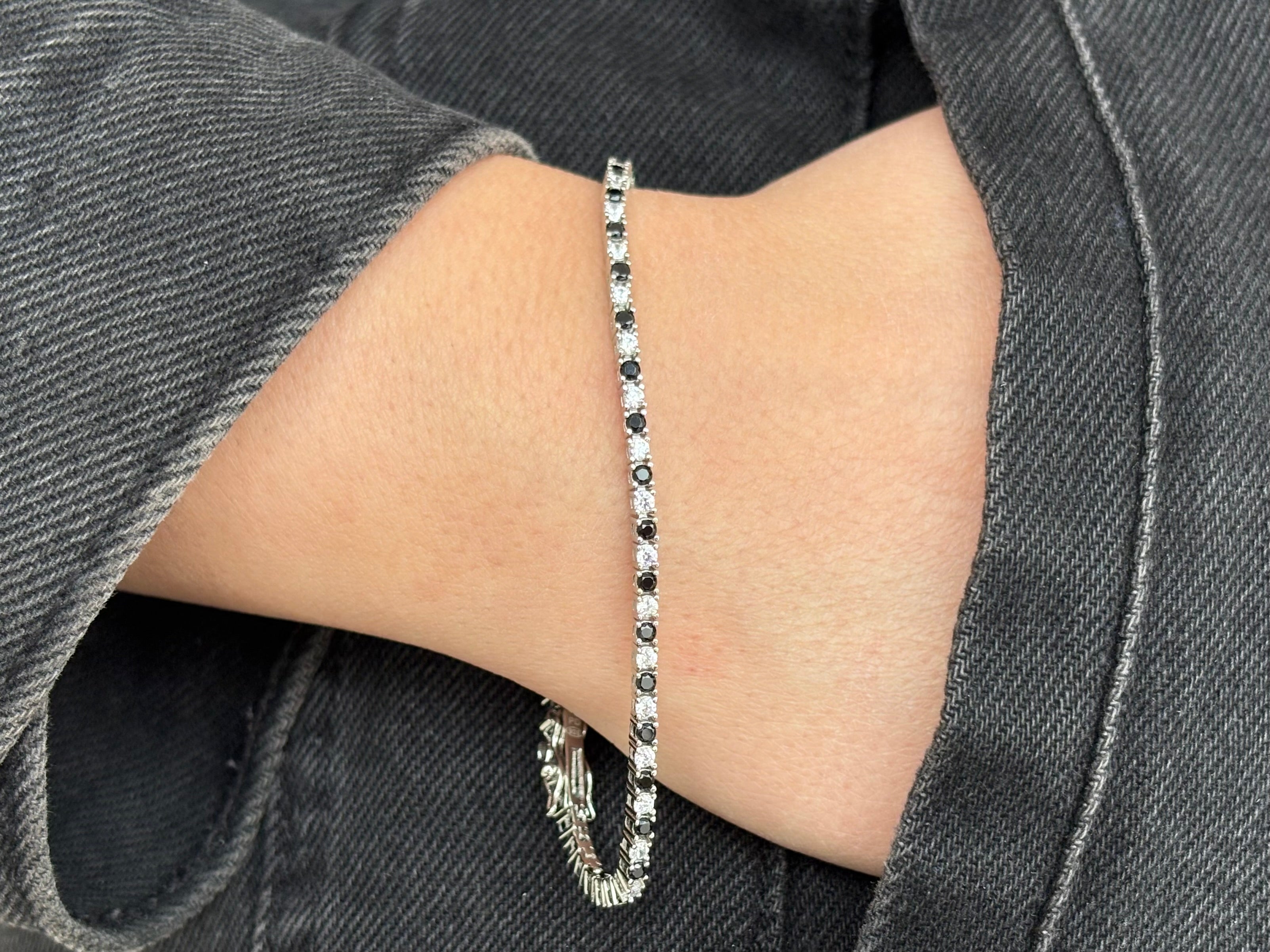 Sofisticato e versatile, Tennis Harmony in argento 925 presenta un’elegante alternanza di zirconi bianchi e neri che crea un gioco di contrasti moderno e raffinato. La linea sottile e il design classico lo rendono un accessorio ideale per ogni stile, capace di aggiungere un tocco di equilibrio e personalità al polso. Perfetto da indossare ogni giorno o per completare look più ricercati con un dettaglio distintivo e luminoso.