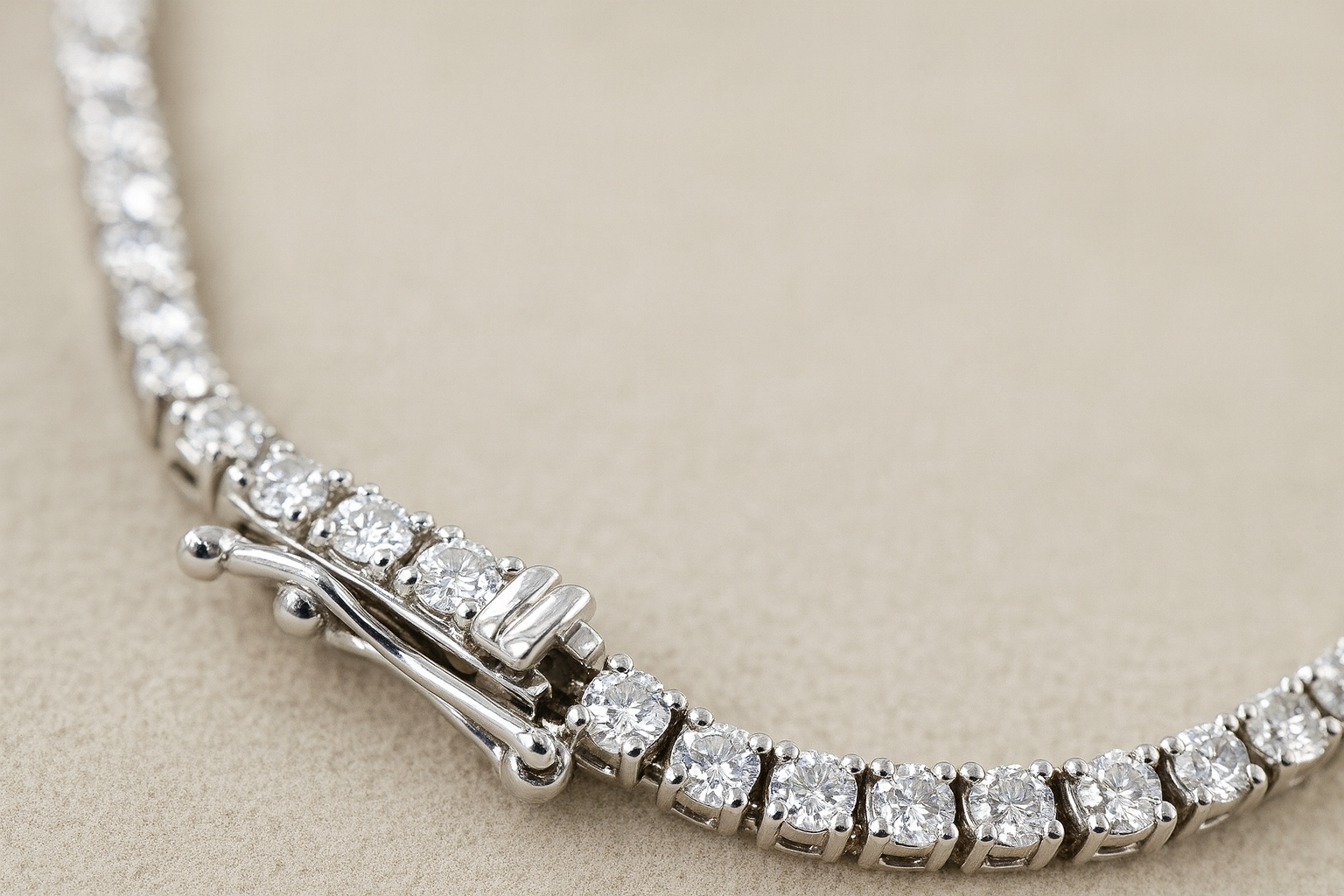 Il design è essenziale, elegante e senza tempo: una fila impeccabile di pietre scintillanti che segue una linea fluida, perfetta sia per look quotidiani che per occasioni speciali.